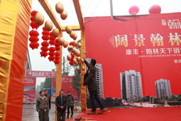 重庆中色品牌营销策划有限公司携手重庆康丰房地产开发有限公司“康丰·翰林天下”营销中心开放暨3号楼应市加推庆典仪式策划和现场执行! 康丰房地产开发有限公司2011年在重庆成立,是重庆土生土长的房地产开发企业,一直感恩家乡父老乡亲以及社会各界人士无微不至的关怀和帮助;康丰房地产开发有限责任公司的发展更离不开家乡父老乡亲的鼎力支持。 因此,康丰房地产开发有限责任公司一贯本着“建设美好家乡,创造优良工程”的经营理念,扎根本土, “康丰·翰林天下” 地处铜梁学府大道中心拥有12万平方宽景城邦、1.2万平米的美式园林、135米的超宽楼距,交通便利、生活便利、周边名校云集。小区完善的生活实施,独立的物业管理是献给龙乡的非豪宅。“康丰·翰林天下”天然的地里优势,铜梁未来CBD的核心区域,家在“康丰·翰林天下”和城市价值一起提升以,势必成为众人居家的理想之地,势必将成为学府大道的高档生活社区。建成后可向社会提供包括多层、高层、小高层在内的高档住宅500多套,并配有设施完善的星级酒店。项目软、硬件配套设施完善,拥有充足的绿化率、先进的电子安全防卫系统,业主休闲、娱乐、场馆等“充分营造最具和谐人性化的人居环境”为不懈的追求目标。因此,公司开发的项目,都是以追求社会效益、品牌效益为主,高挚人本文化的旗帜,不仅在质量、配套上下功夫,而且吸取先进企业的做法,在环境建设、户型设计、物业管理和智能化建设等方面狠下功夫,赋予普通住宅以丰富的含义。